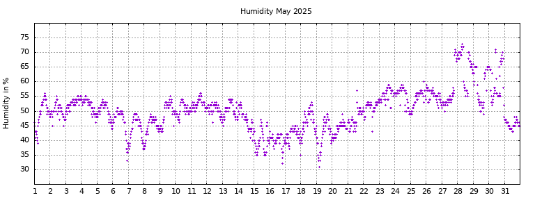 | Month [+] | RHmin % | RHmax % | Mean % | σ | n |